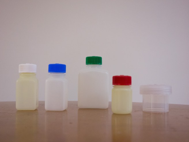 The ones that are especially useful are the guys with the white and blue caps. Each of those holds 2 fluid ounces and is perfect for transporting our extremely important Woolite. The container with the green cap is too large for a carry on bag, but it makes a great flask so hold onto it in case you need it later.