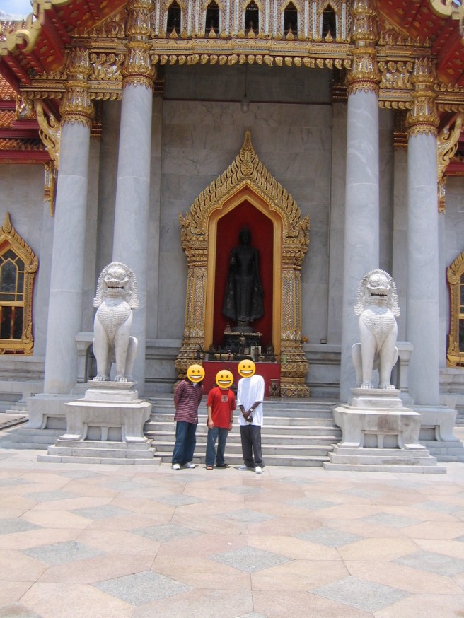 This is a completely imbalanced picture with way too much empty space below our feet and a large portion of the interesting architecture behind us is cut off. Had the person angled the camera up a little bit, he could have easily gotten the top of the building in the frame. Also, it’s very crooked. I don’t remember, but I wouldn’t be surprised if the random guy we asked to take our picture shot this one handed with no effort whatsoever.