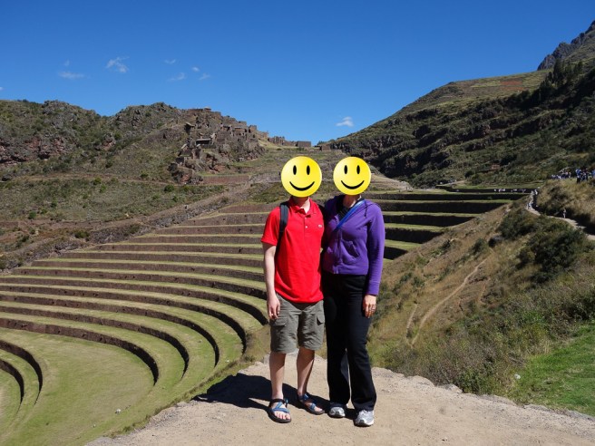 This is a perfectly good picture. Our entire bodies are included, it’s very clear where we’re at, and the background is nicely balanced with just the right amount of ground and sky in the frame. Good stuff.