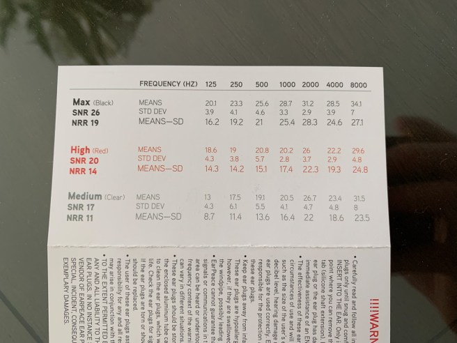 Each set comes with three ear plugs, so in the event you damage or lose one, you don’t have to buy a new set. It’s a nice touch. The plugs come with three different noise filters providing different levels of sound blockage. I only tested the Max filter since I wanted as much noise blocked out as possible. Also included is a metal cylindrical case. You can choose either red or black. I didn’t find the case necessary, so I left it at home.