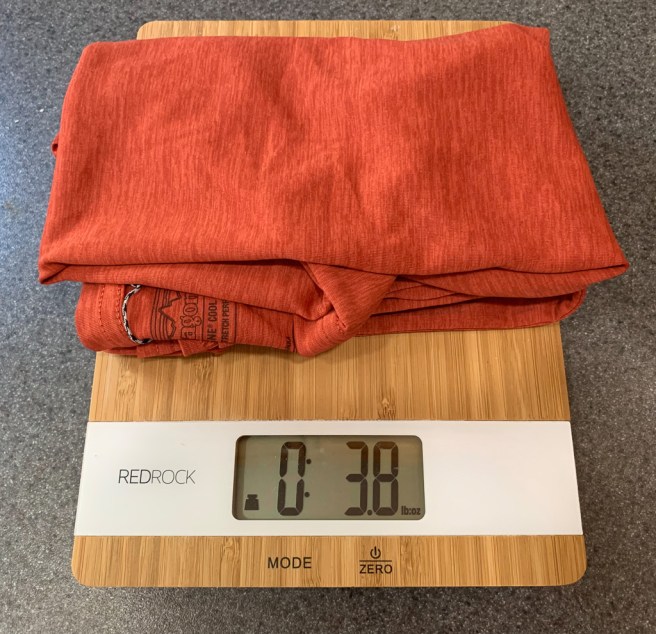 As you can see in the photo above, a small size shirt weighs 3.8 ounces, which is lighter than a standard cotton t-shirt, but significantly heavier than the Capilene Lightweight tee which is 2.5 ounces in the same size. As far as travel shirts go, the Capilene Cool Daily is definitely on the lighter side, so having a few of these in your bag shouldn’t add too much of a burden on your shoulders.